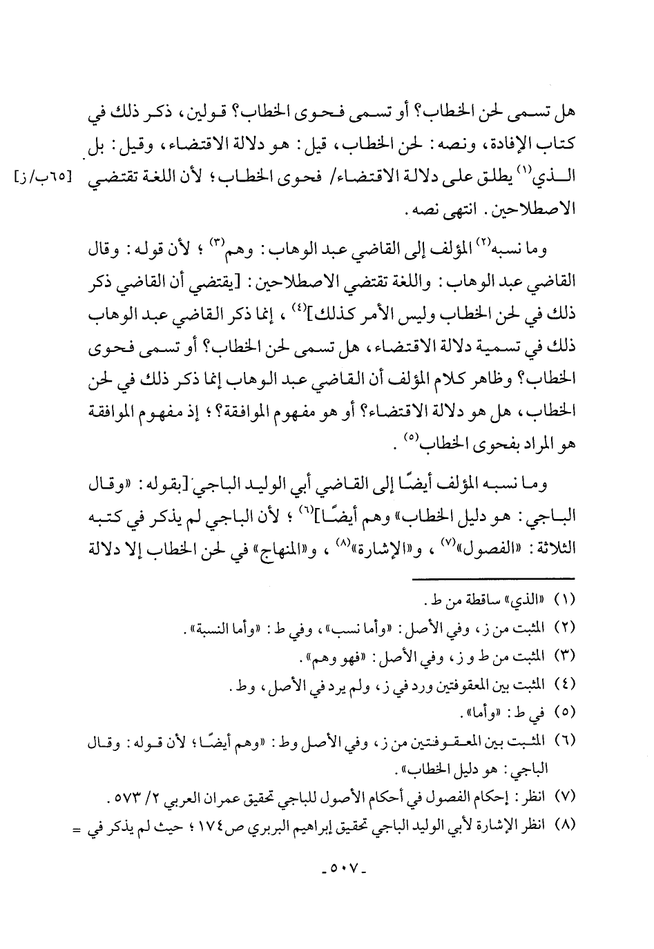 (¬7) انظر: إحكام الفصول في أحكام الأصول للباجي تحقيق عمران العربي 2/ 573.