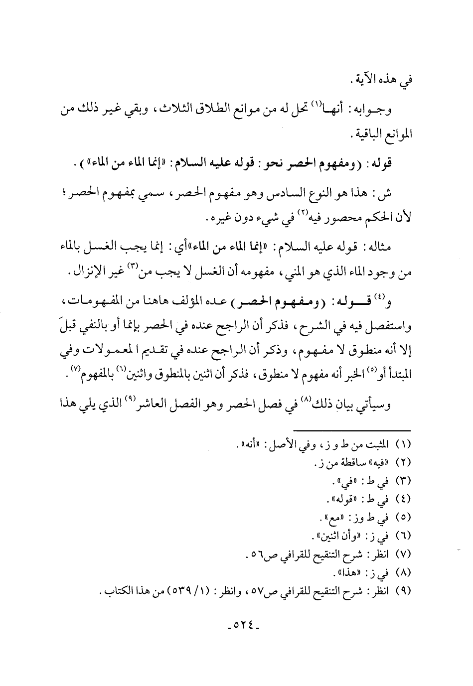 وسيأتي بيان ذلك (¬8) في فصل الحصر وهو الفصل العاشر (¬9) الذي يلي هذا