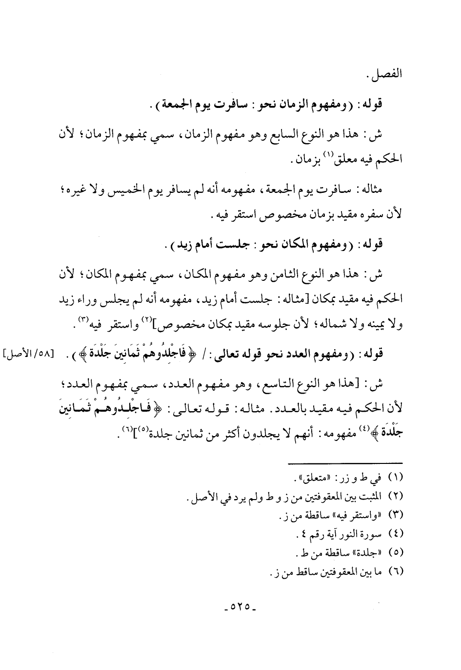 ش: [هذا هو النوع التاسع، وهو مفهوم العدد، سمي بمفهوم العدد؛ لأن الحكم فيه مقيد بالعدد. مثاله: قوله تعالى: {فَاجْلِدُوهُمْ ثَمَانِينَ جَلْدَةً} (¬4) مفهومه: أنهم لا يجلدون أكثر من ثمانين جلدة (¬5)] (¬6).