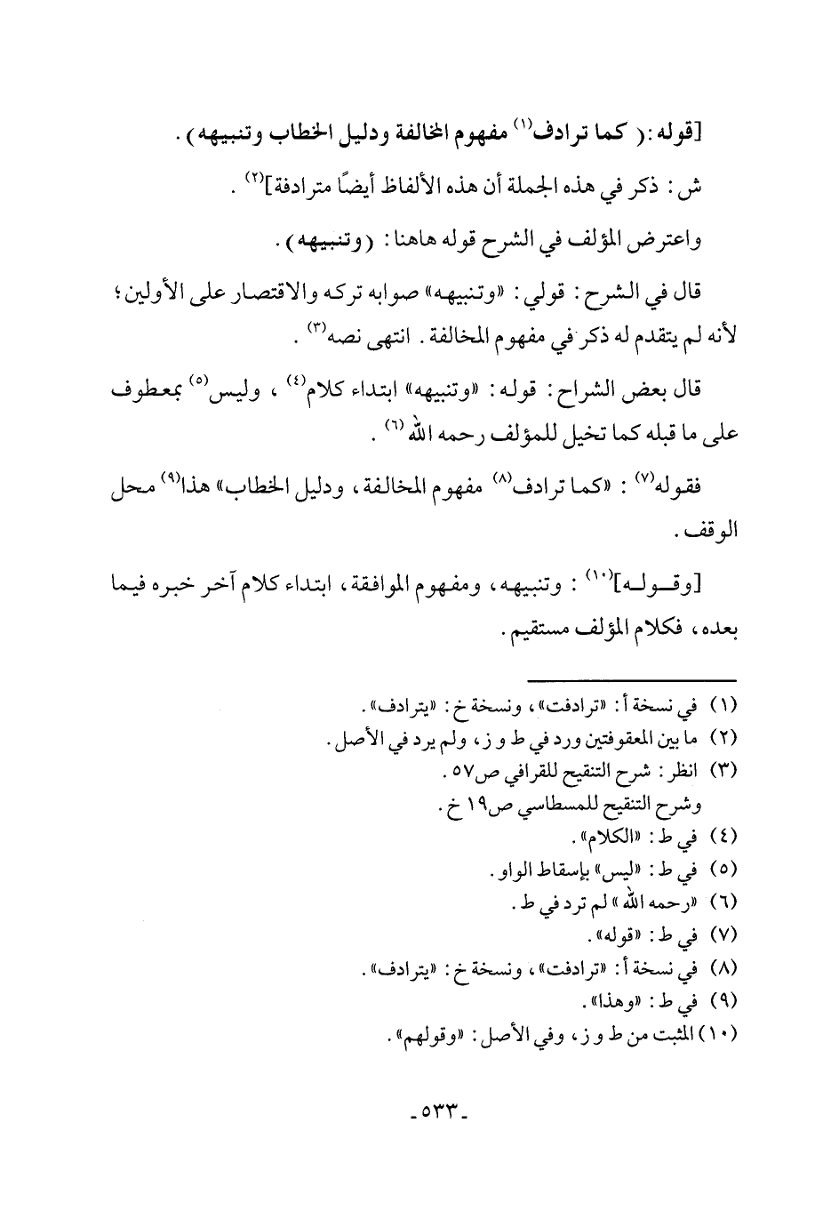 فقوله (¬7): "كما ترادف (¬8) مفهوم المخالفة، ودليل الخطاب" هذا (¬9) محل الوقف.