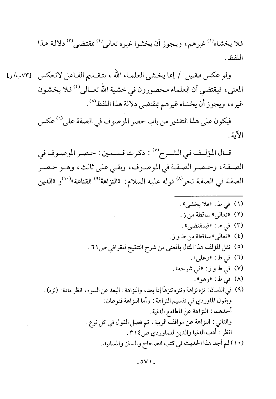 فيكون على هذا التقدير من باب حصر الموصوف في الصفة على (¬6) عكس الآية.