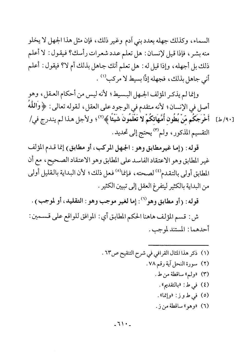 وإنما لم يذكر المؤلف الجهل البسيط؛ لأنه ليس من أحكام العقل، وهو أصل في الإنسان؛ لأنه متقدم في الوجود على العقل، لقوله تعالى: {وَاللَّهُ أَخْرَجَكُمْ مِنْ بُطُونِ أُمَّهَاتِكُمْ لَا تَعْلَمُونَ شَيْئًا} (¬2)؛ ولأجل هذا لم يندرج في التقسيم المذكور، ولم (¬3) يحتج إلى تحديد.