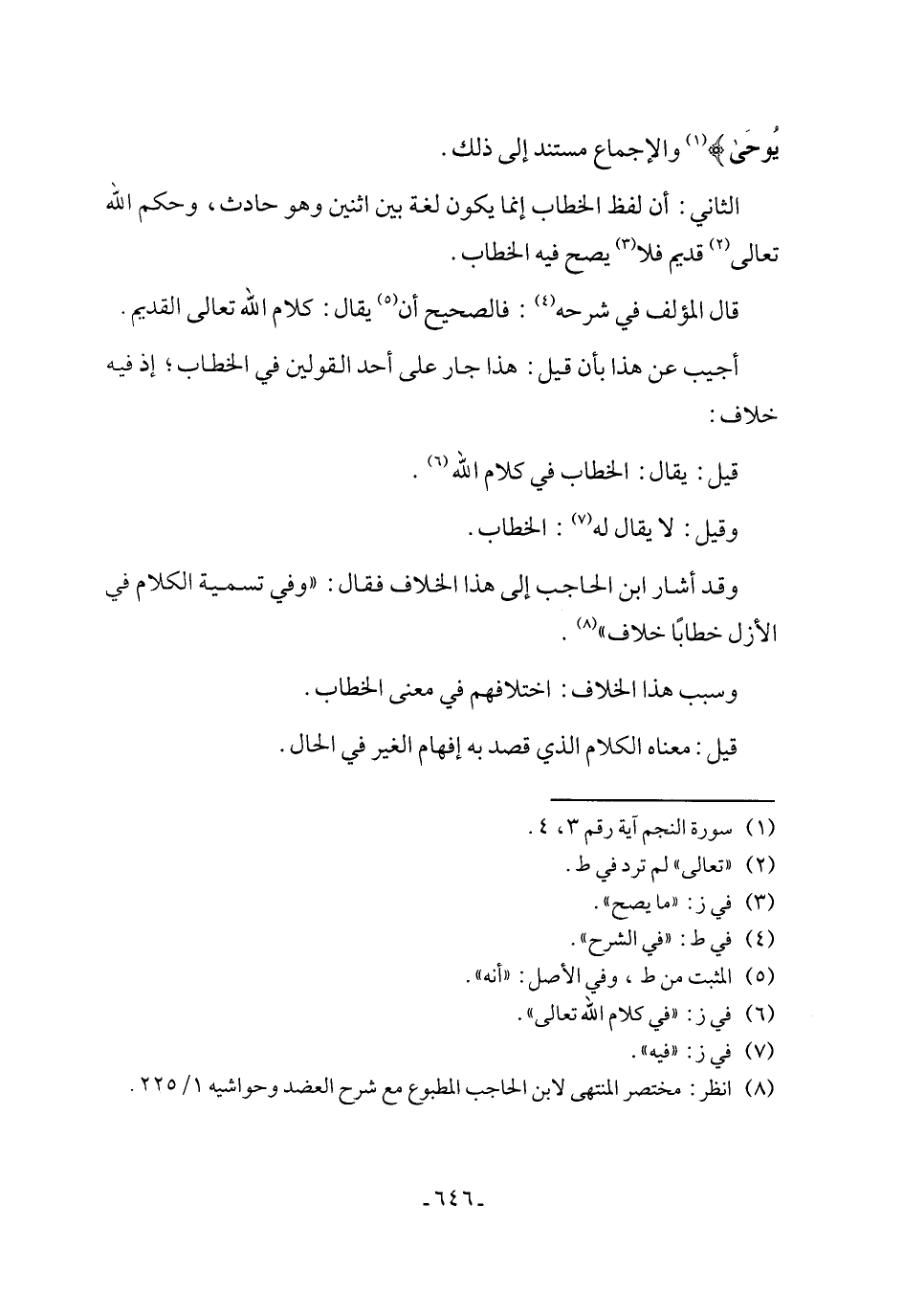 (¬8) انظر: مختصر المنتهى لابن الحاجب المطبوع مع شرح العضد وحواشيه 1/ 225.