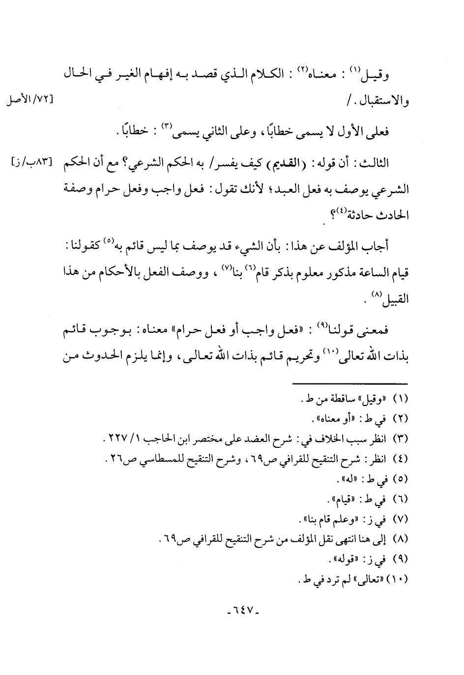 (¬8) إلى هنا انتهى نقل المؤلف من شرح التنقيح للقرافي ص 69.