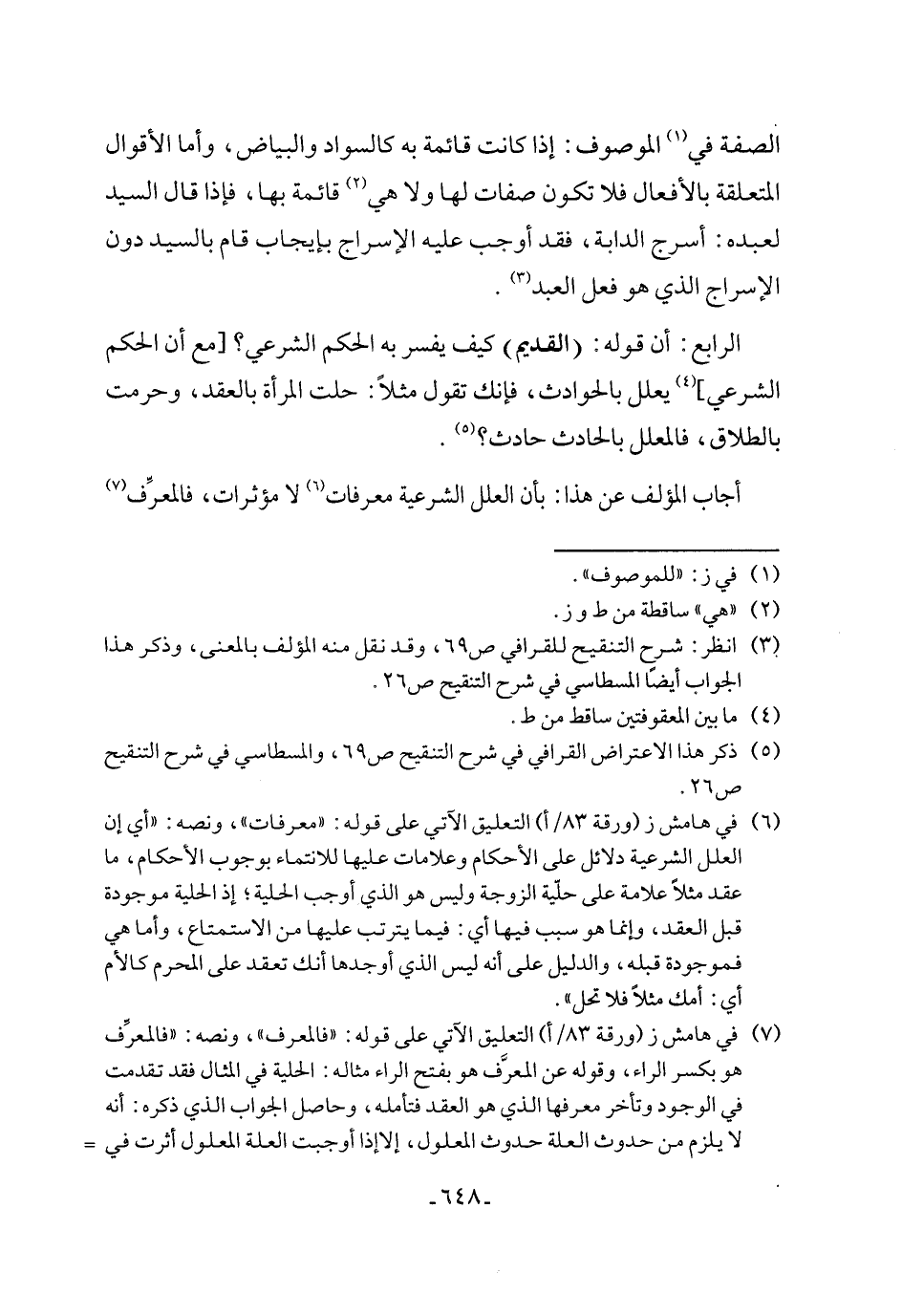 (¬3) انظر: شرح التنقيح للقرافي ص 69، وقد نقل منه المؤلف بالمعنى، وذكر هذا الجواب أيضًا المسطاسي مي شرح التنقيح ص 26.