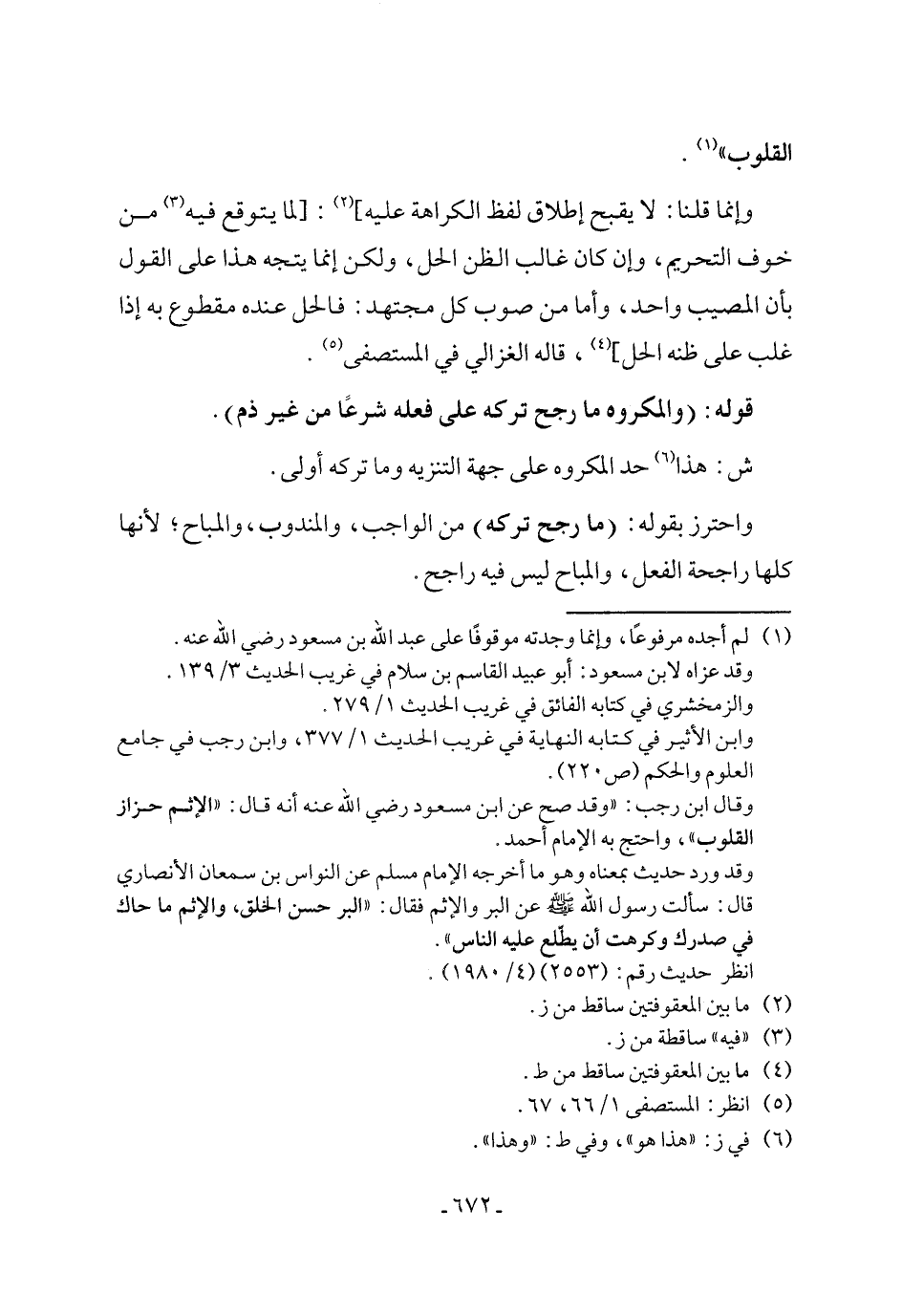 وقال ابن رجب: "وقد صح عن ابن مسعود رضي الله عنه أنه قال: "الإثم حزاز القلوب"، واحتج به الإمام أحمد.