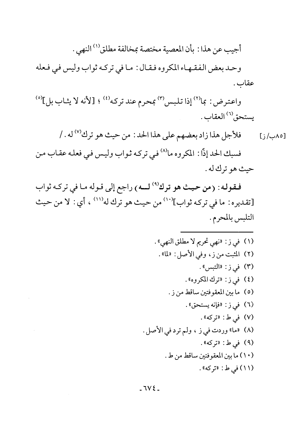 فقوله: (من حيث هو ترك (¬9) له) راجع إلى قوله ما في تركه ثواب [تقديره: ما في تركه ثواب] (¬10) من حيث هو ترك له (¬11)، أي: لا من حيث التلبس بالمحرم.
