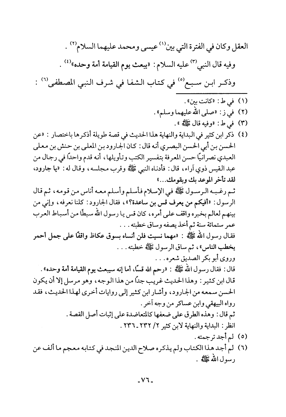 (¬6) لم أجد هذا الكتاب ولم يذكره صلاح الدين المنجد في كتابه معجم ما ألف عن رسول الله - صلى الله عليه وسلم -.