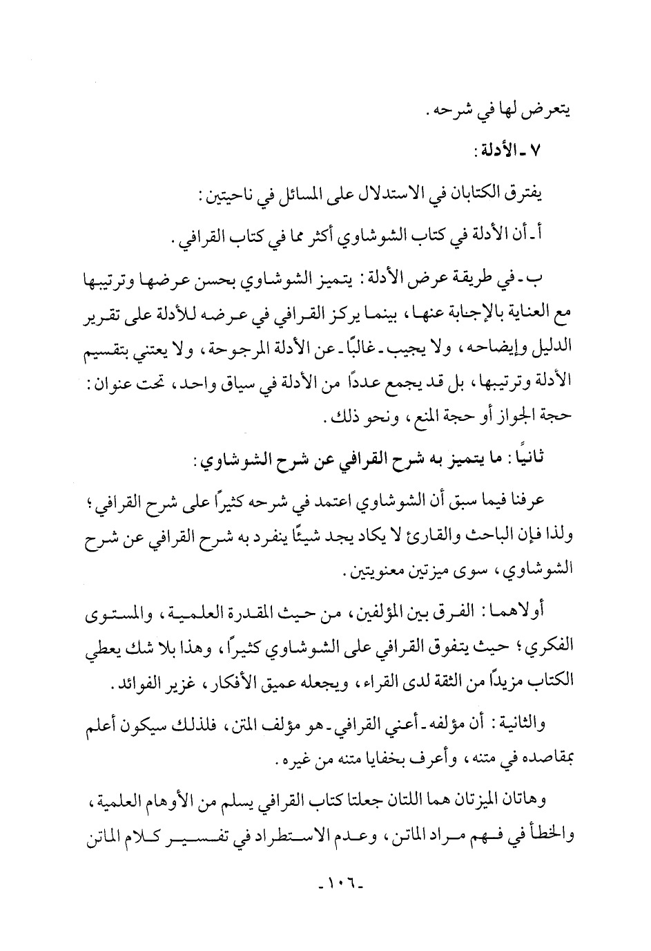 ثانيًا: ما يتميز به شرح القرافي عن شرح الشوشاوي: