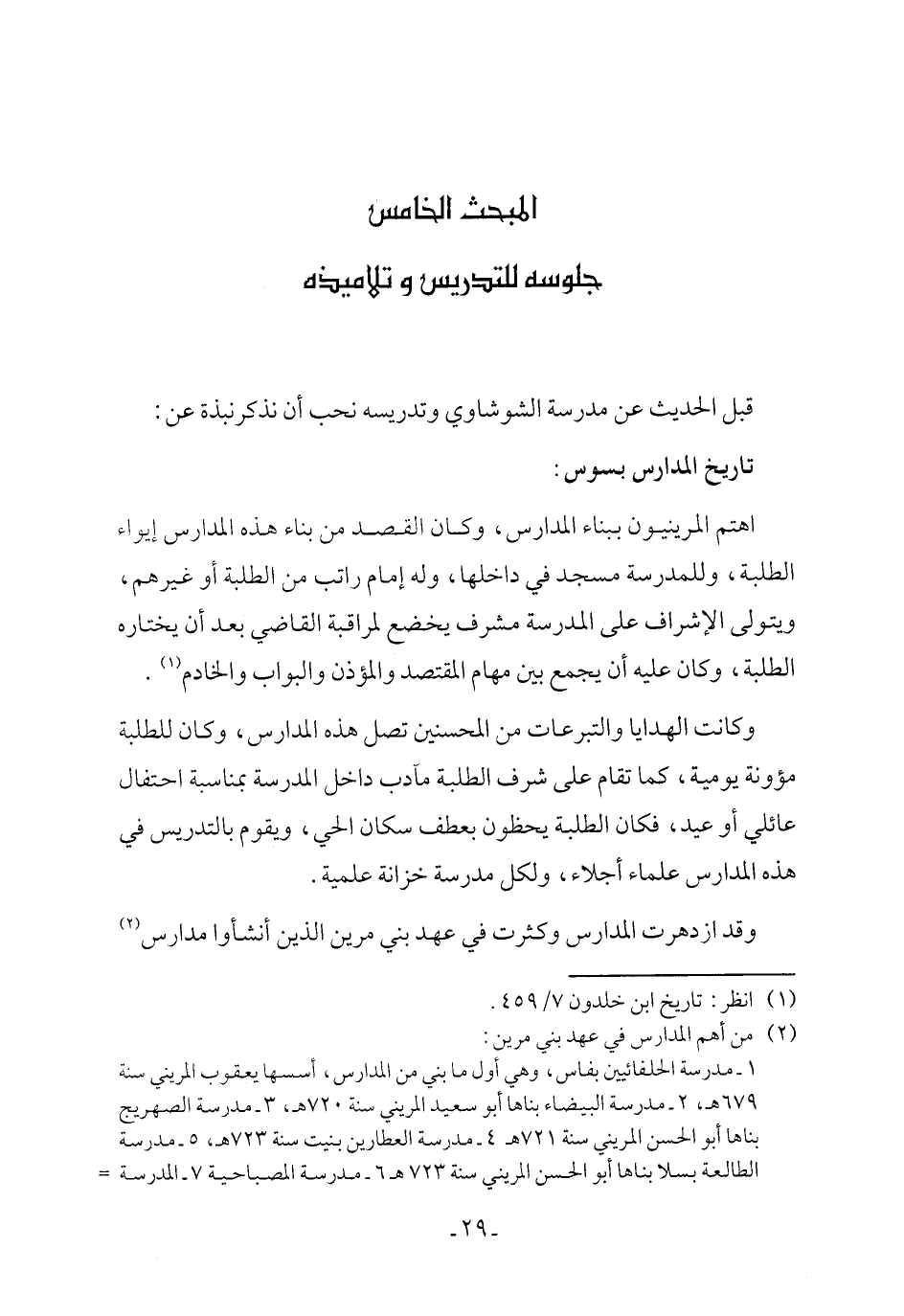 وقد ازدهرت المدارس وكثرت في عهد بني مرين الذين أنشأوا مدارس (¬2)