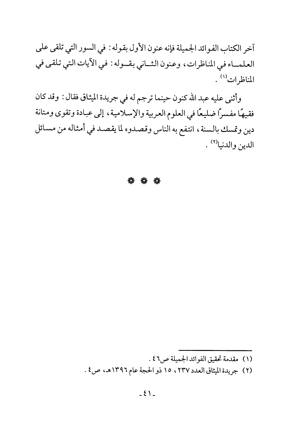 (¬1) مقدمة تحقيق الفوائد الجميلة ص 46.