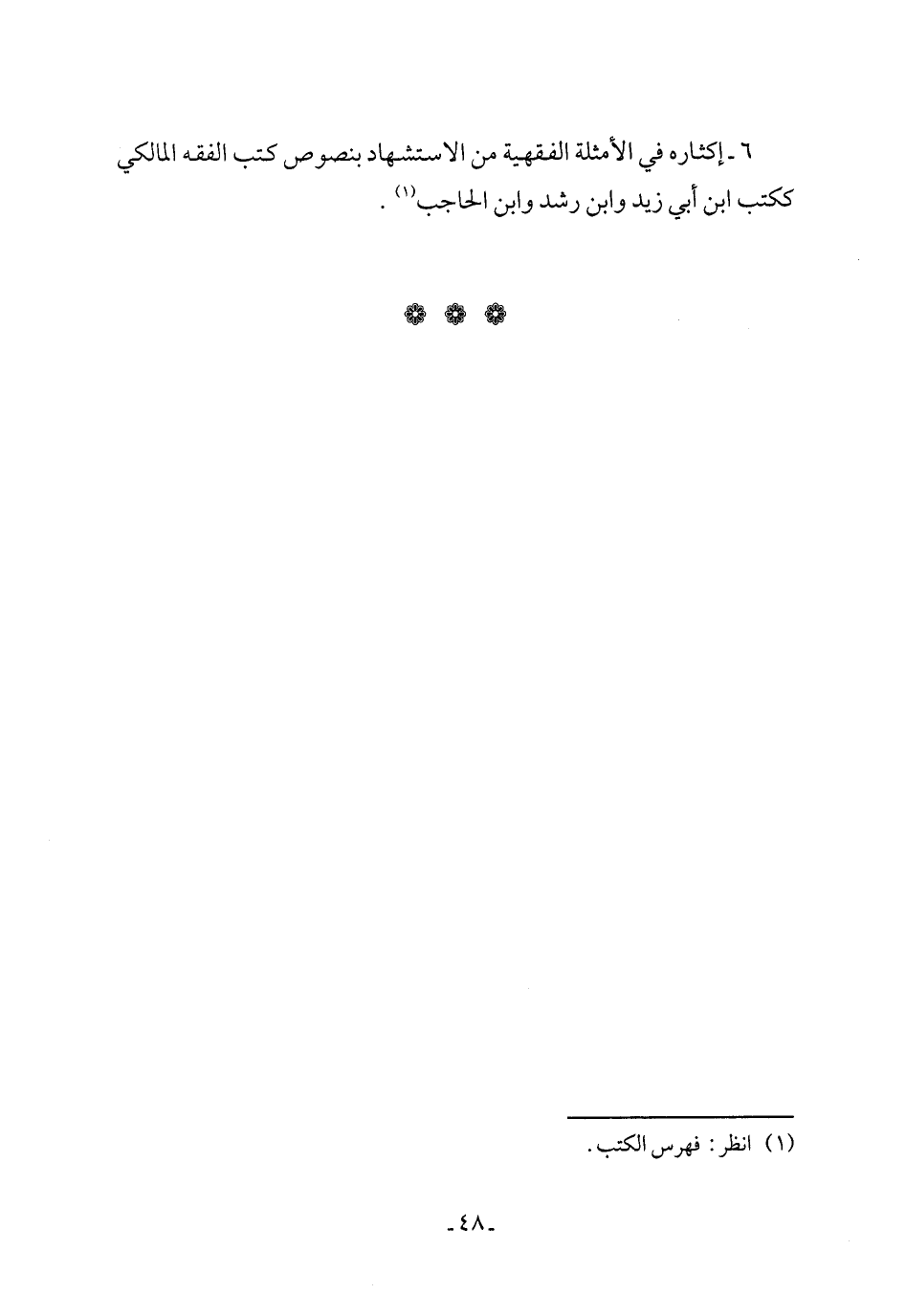 6 - إكثاره في الأمثلة الفقهية من الاستشهاد بنصوص كتب الفقه المالكي ككتب ابن أبي زيد وابن رشد وابن الحاجب (¬1).