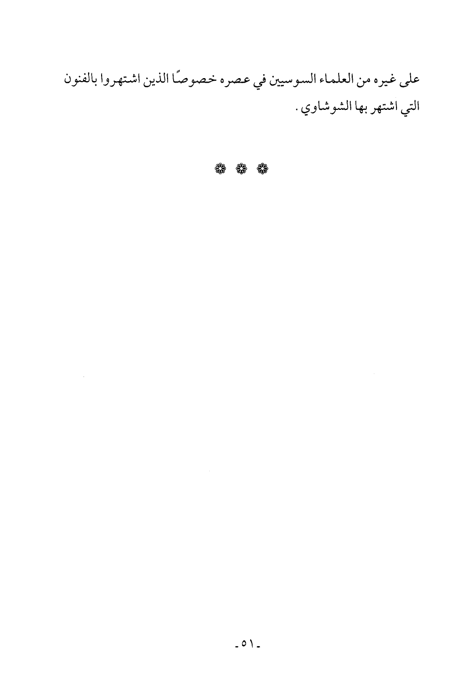 على غيره من العلماء السوسيين في عصره خصوصًا الذين اشتهروا بالفنون التي اشتهر بها الشوشاوي.