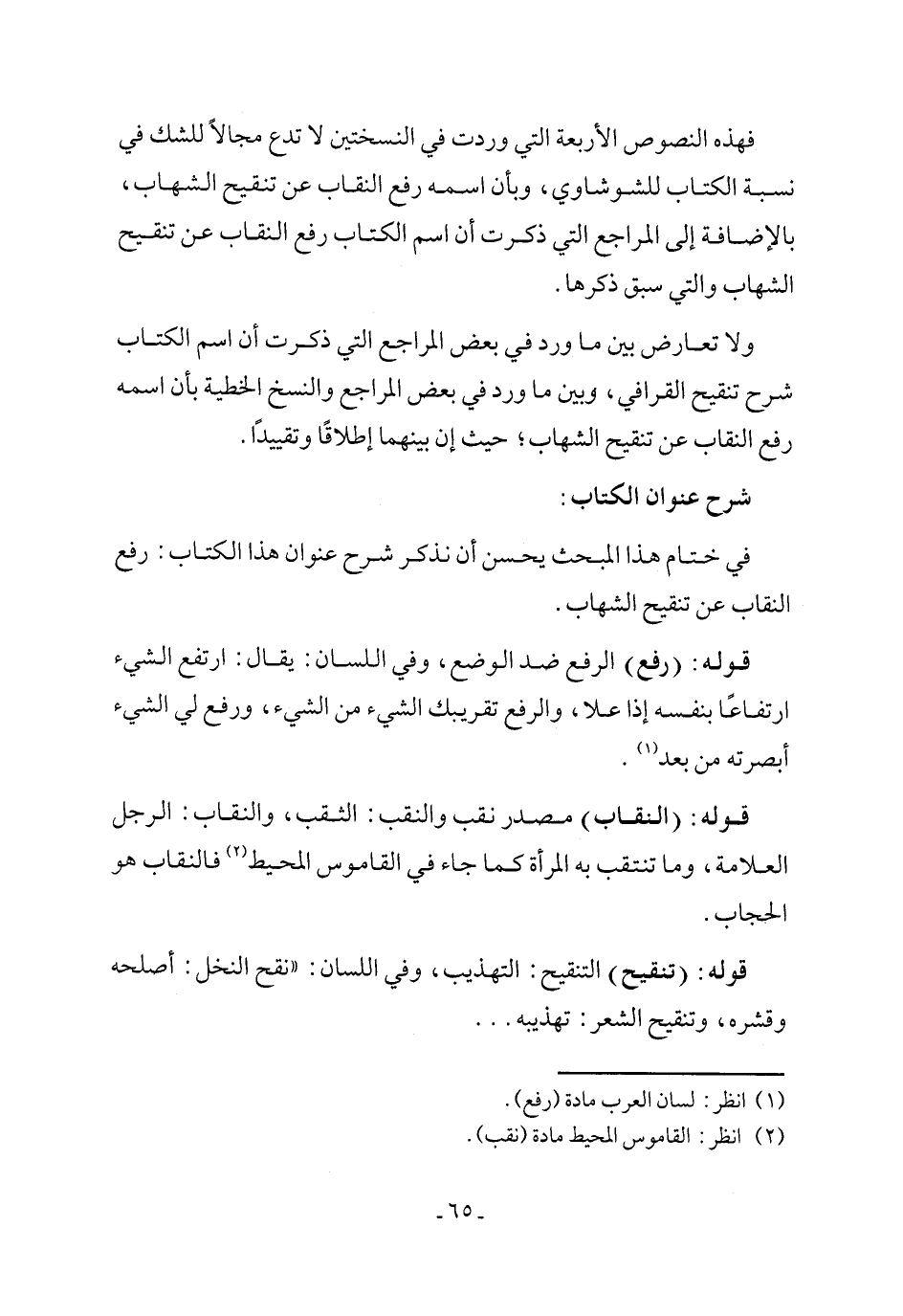 في ختام هذا المبحث يحسن أن نذكر شرح عنوان هذا الكتاب: رفع النقاب عن تنقيح الشهاب.