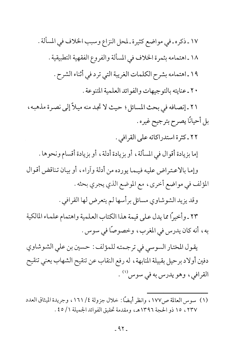 وقد يزيد الشوشاوي مسائل برأسها لم يتعرض لها القرافي.