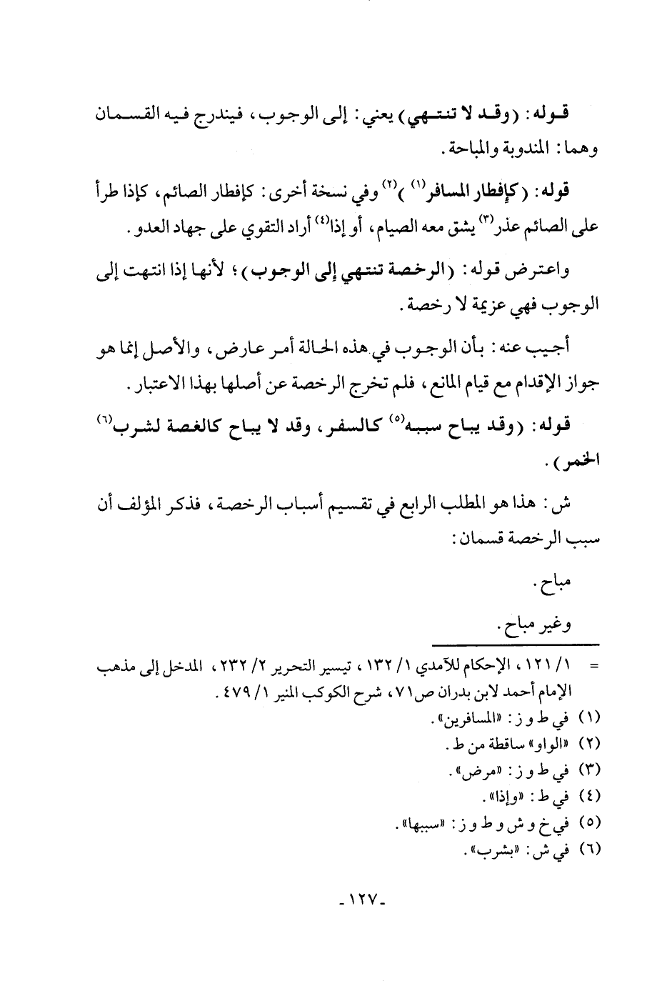 واعترض قوله: (الرخصة تنتهي إِلى الوجوب)؛ لأنها إذا انتهت إلى الوجوب فهي عزيمة لا رخصة.