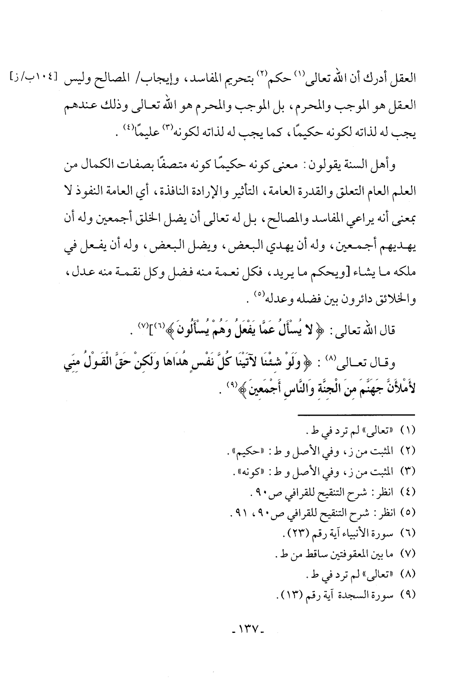 قال الله تعالى: {لَا يُسْأَلُ عَمَّا يَفْعَلُ وَهُمْ يُسْأَلُونَ} (¬6)] (¬7).