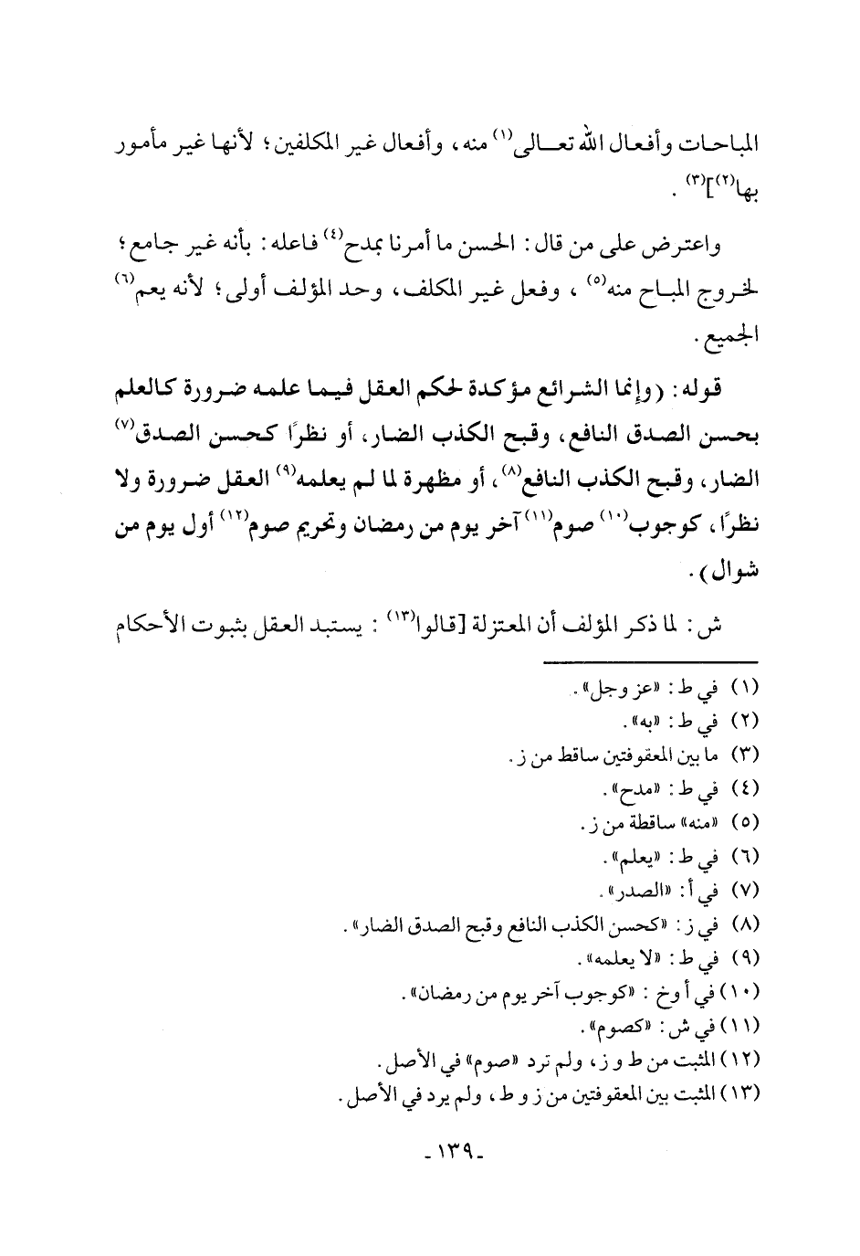 (¬13) المثبت بين المعقوفتين من ز وط، ولم يرد في الأصل.