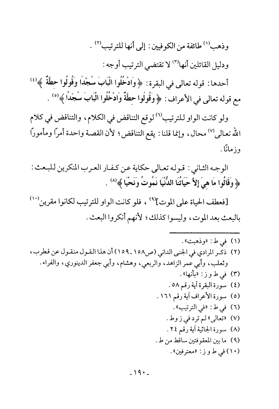 وذهب (¬1) طائفة من الكوفيين: إلى أنها للترتيب (¬2).