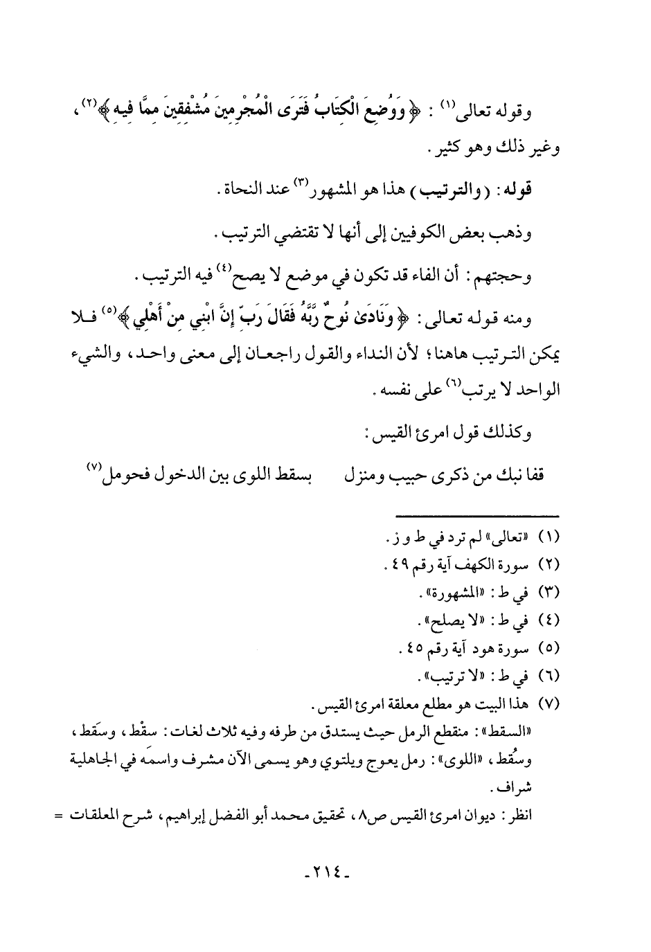 انظر: ديوان امرئ القيس ص 8، تحقيق محمد أبو الفضل إبراهيم، شرح المعلقات =