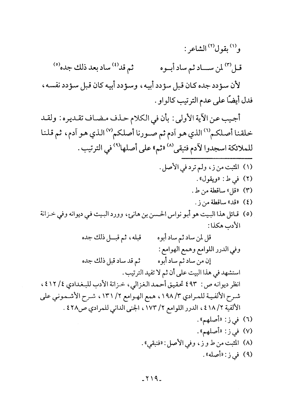 (¬5) قائل هذا البيت هو أبو نواس الحسن بن هانئ، وورد البيت في ديوانه وفي خزانة الأدب هكذا: