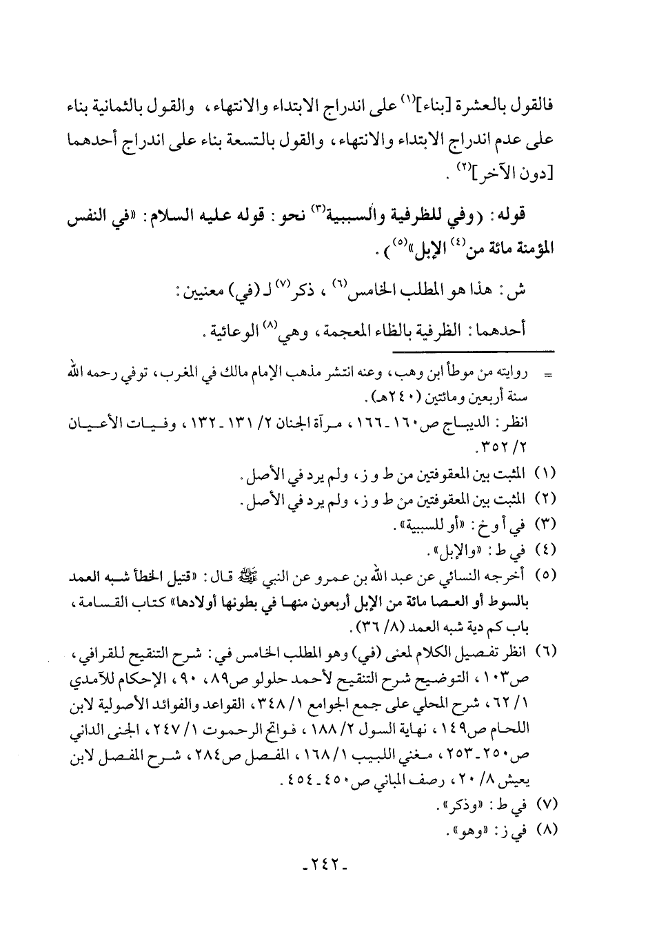 قوله: (وفي للظرفية والسببية (¬3) نحو: قوله عليه السلام: "في النفس المؤمنة مائة من (¬4) الإبل" (¬5)).
