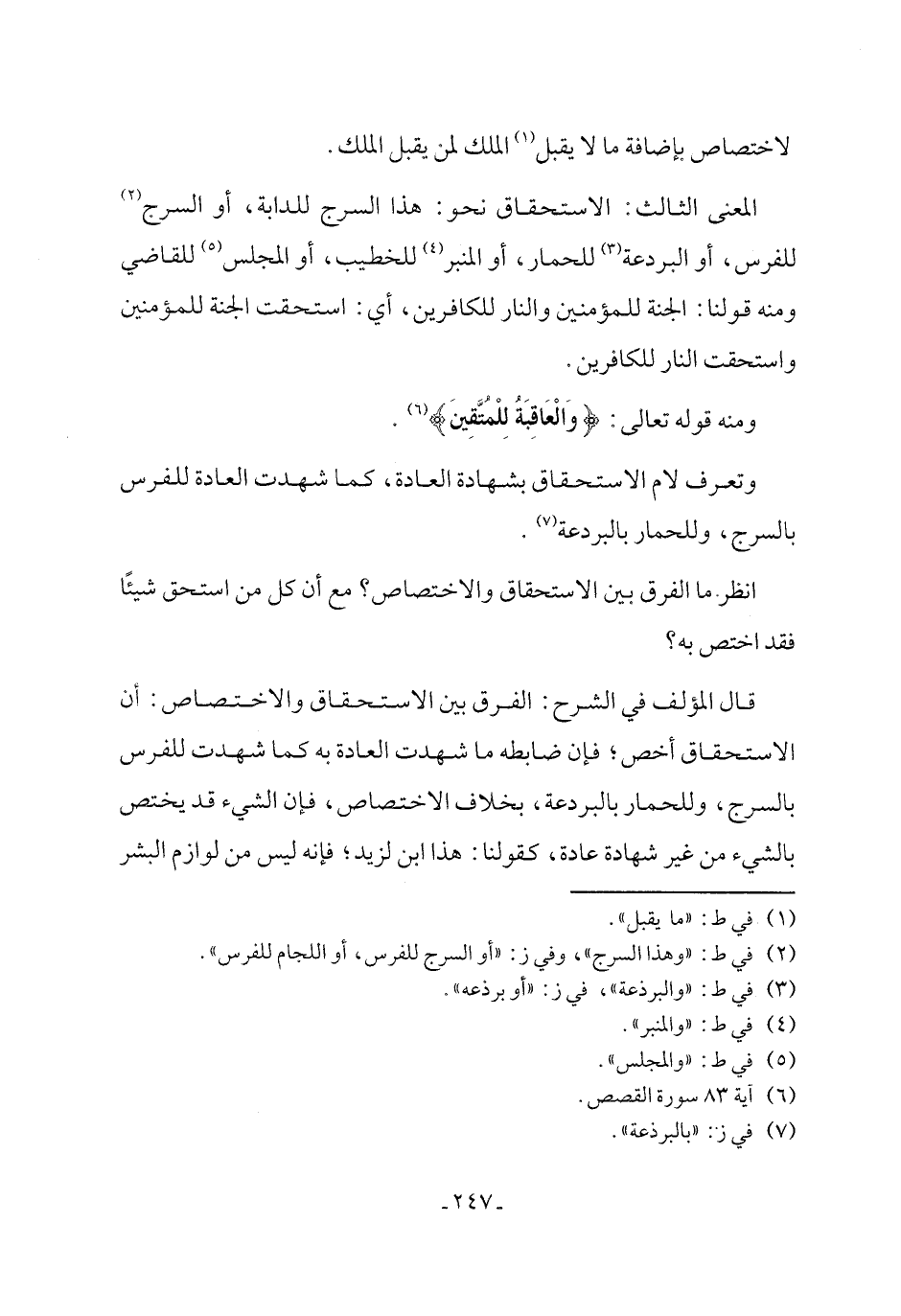 (¬2) في ط: "وهذا السرج"، وفي ز: "أو السرج للفرس، أو اللجام للفرس".