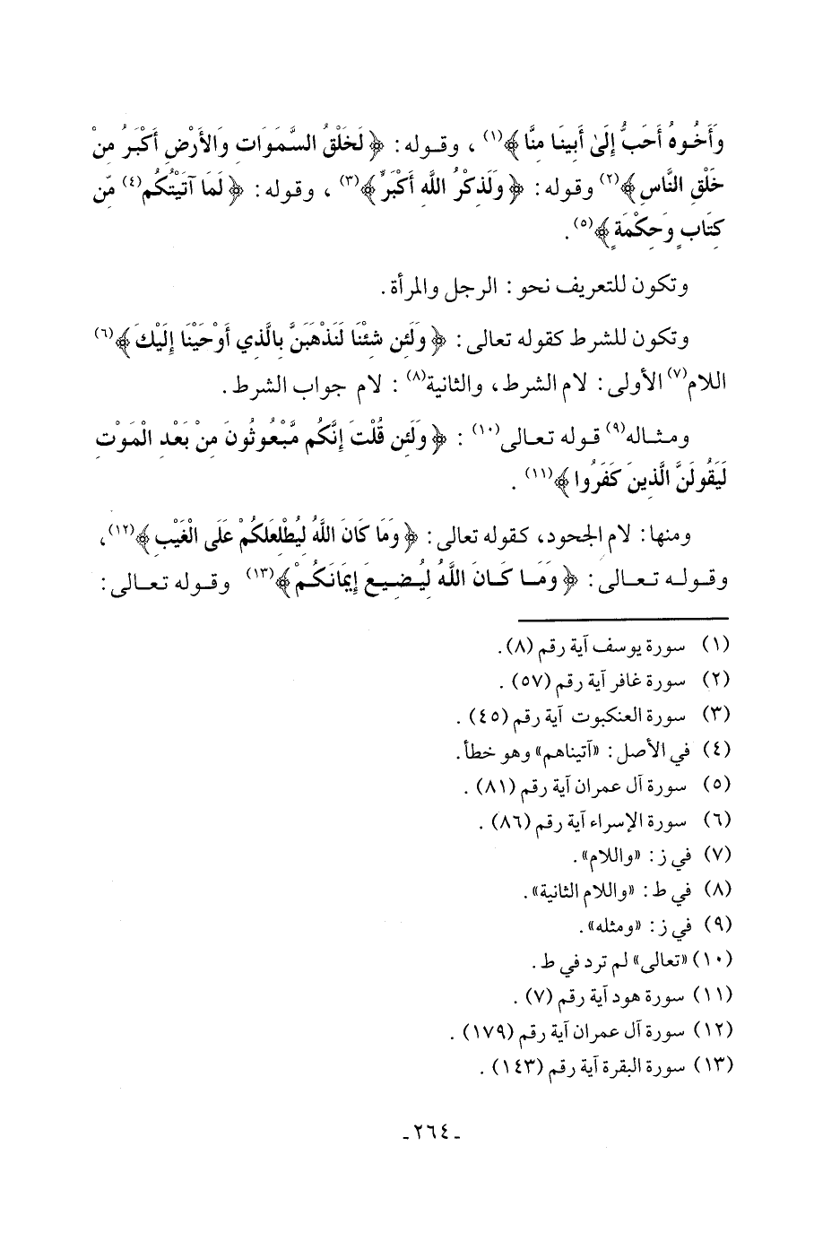 ومنها: لام الجحود، كقوله تعالى: {وَمَا كَانَ اللَّهُ لِيُطْلِعَكُمْ عَلَى الْغَيْبِ} (¬12)، وقوله تعالى: {وَمَا كَانَ اللَّهُ لِيُضِيعَ إِيمَانَكُمْ} (¬13) وقوله تعالى: