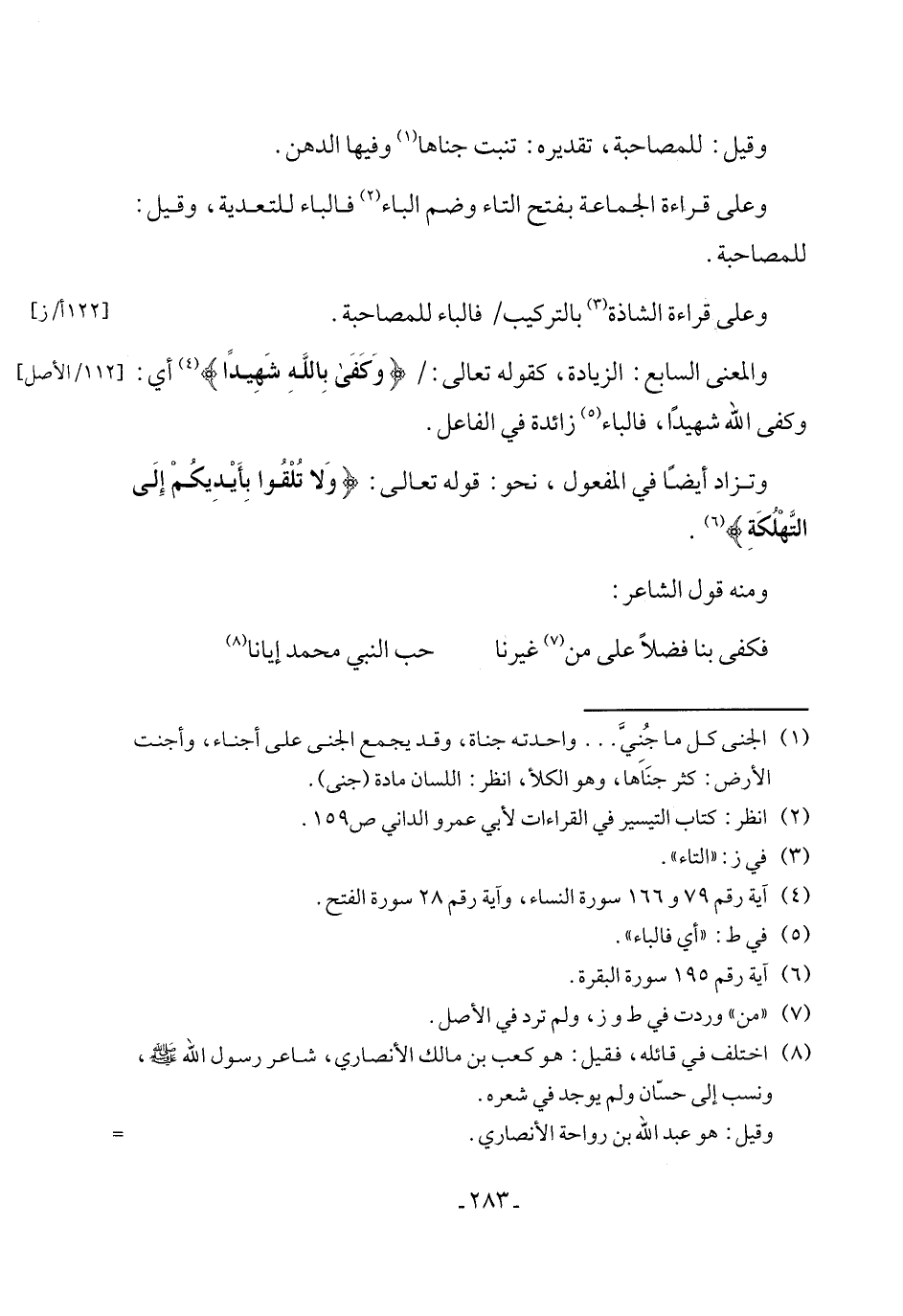 (¬8) اختلف في قائله، فقيل: هو كعب بن مالك الأنصاري، شاعر رسول الله - صلى الله عليه وسلم -، ونسب إلى حسّان ولم يوجد في شعره.