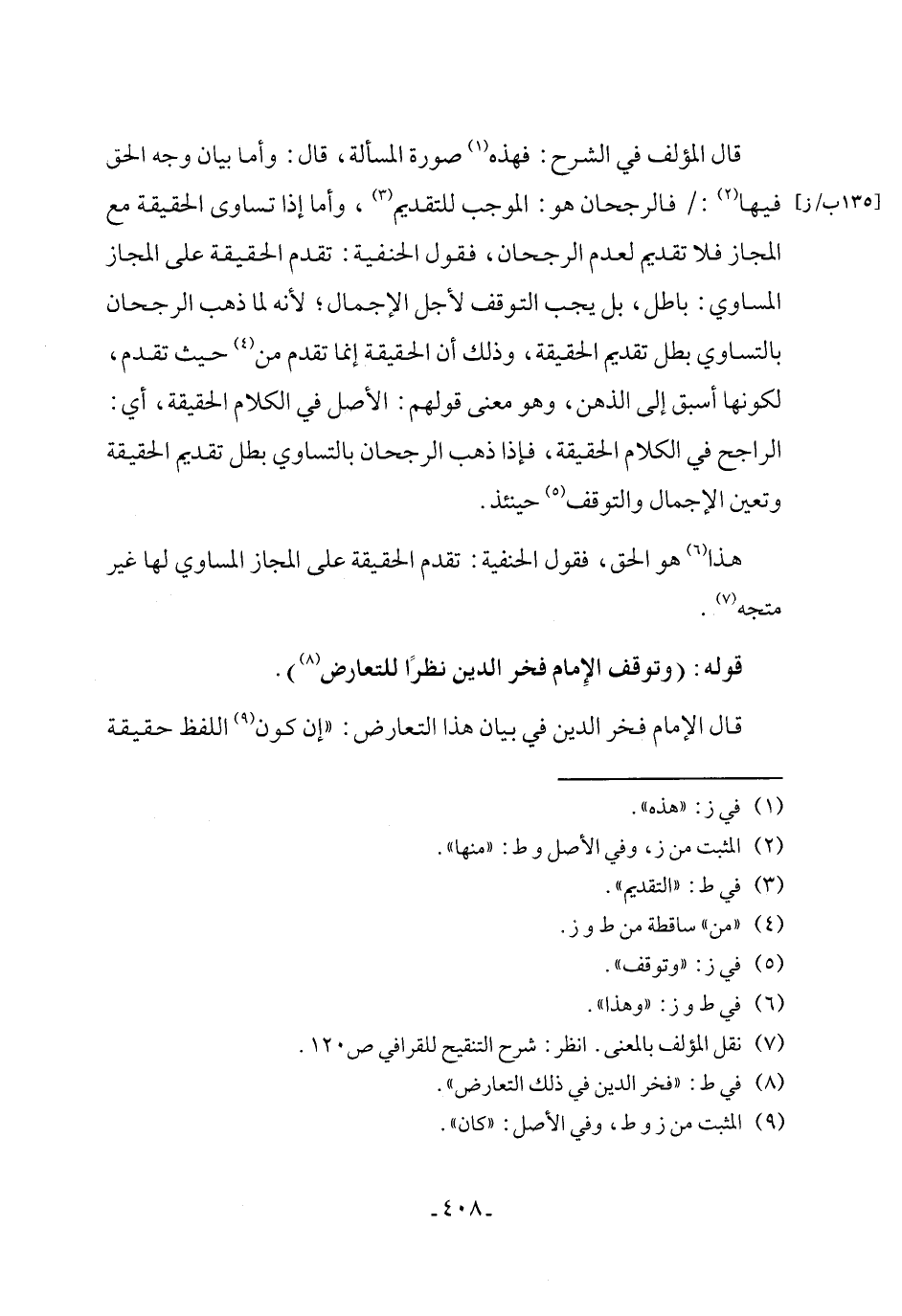 (¬8) في ط: "فخر الدين في ذلك التعارض".