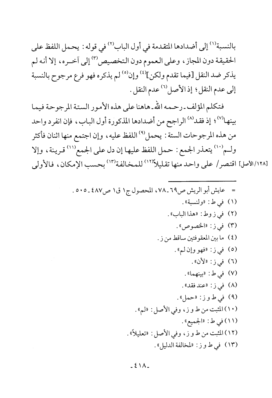= عايش أبو الريش ص 69 - 78، المحصول ج 1 ق 1 ص 487 - 505