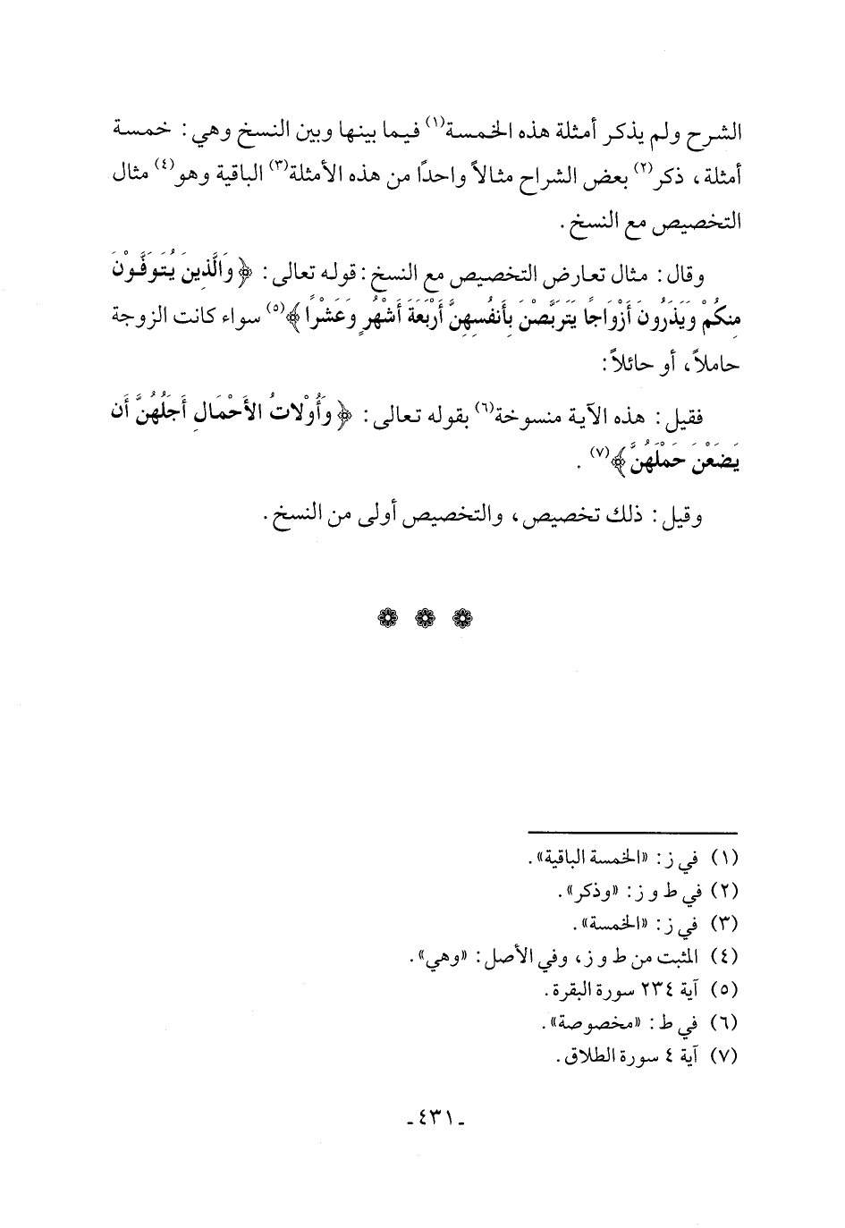 الشرح ولم يذكر أمثلة هذه الخمسة (¬1) فيما بينها وبين النسخ وهي: خمسة أمثلة، ذكر (¬2) بعض الشراح مثالاً واحدًا من هذه الأمثلة (¬3) الباقية وهو (¬4) مثال التخصيص مع النسخ.