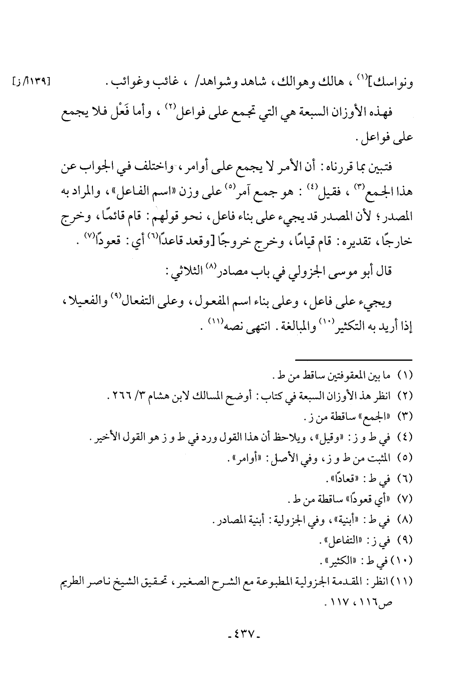 (¬11) انظر: المقدمة الجزولية المطبوعة مع الشرح الصغير، تحقيق الشيخ ناصر الطريم ص 116, 117.