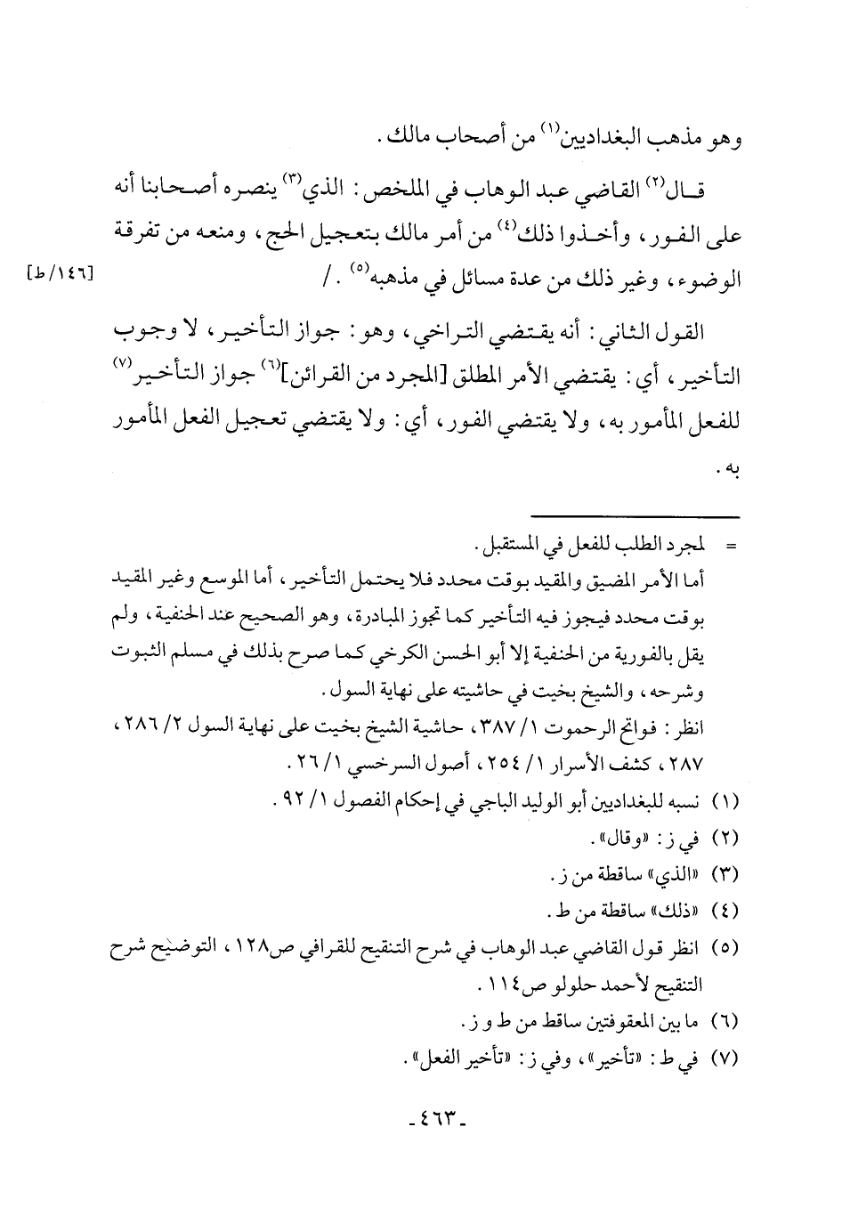 (¬5) انظر قول القاضي عبد الوهاب في شرح التنقيح للقرافي ص 128، التوضيح شرح التنقيح لأحمد حلولو ص 114.