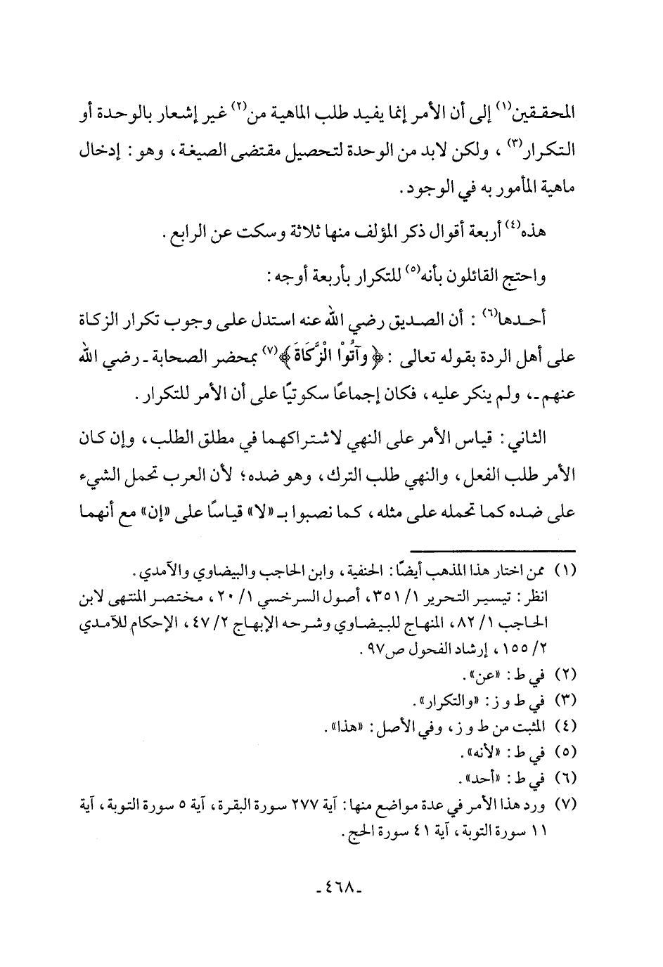 (¬7) ورد هذا الأمر في عدة مواضع منها: آية 277 سورة البقرة، آية 5 سورة التوبة، آية 11 سورة التوبة، آية 41 سورة الحج.