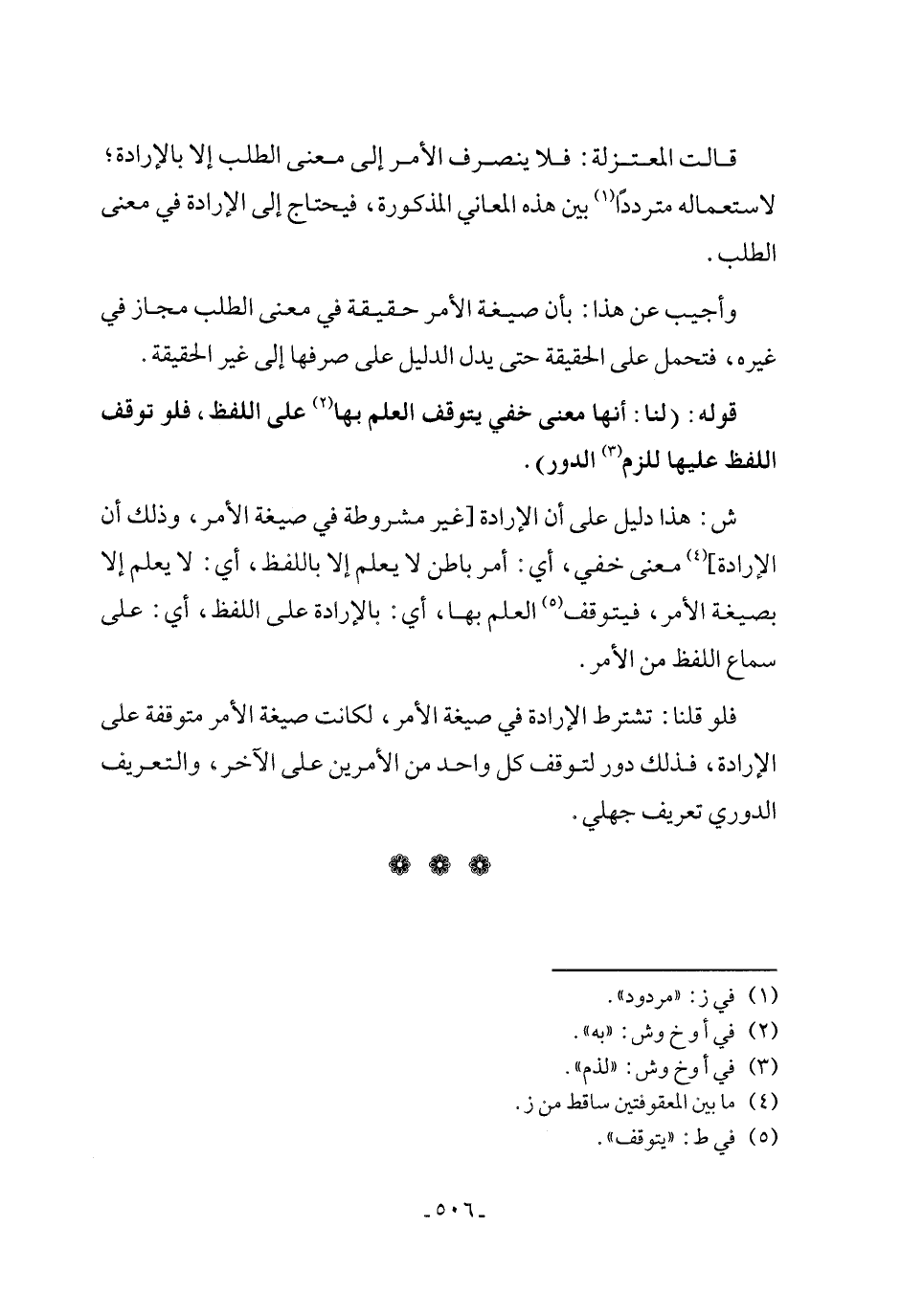 فلو قلنا: تشترط الإرادة في صيغة الأمر, لكانت صيغة الأمر متوقفة على الإرادة، فذلك دور لتوقف كل واحد من الأمرين على الآخر, والتعريف الدوري تعريف جهلي.