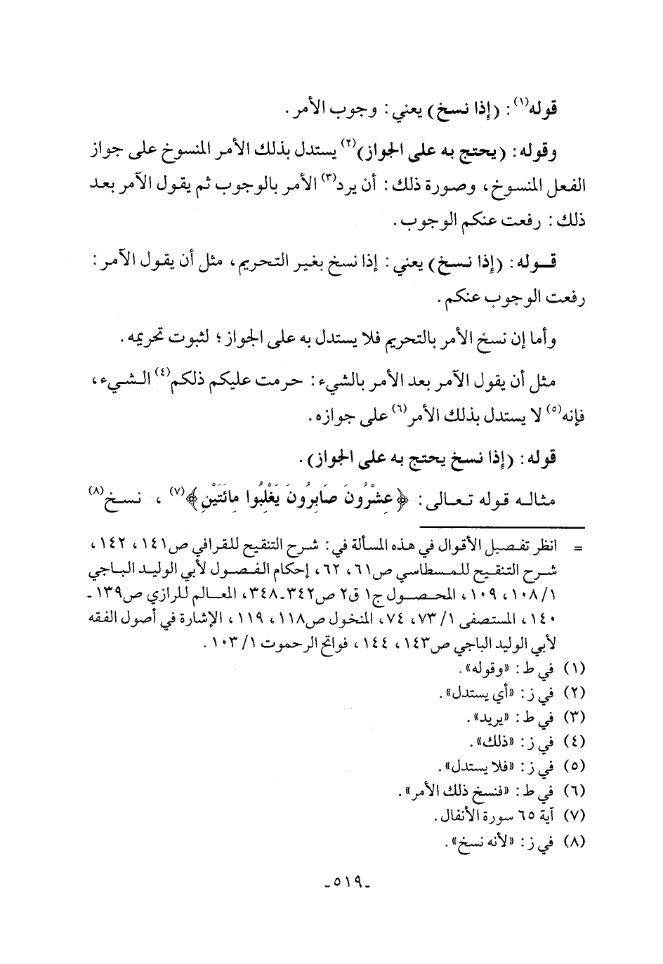 = انظر تفصيل الأقوال في هذه المسألة في: شرح التنقيح للقرافي ص 141، 142، شرح التنقيح المسطاسي ص 61، 62, إحكام الفصول لأبي الوليد الباجي 1/ 108، 109, المحصول ج 1 ق 2 ص 342 - 348، المعالم للرازي ص 139 - 140, المستصفى 1/ 73، 74 المنخول ص 118, 119، الإشارة في أصول الفقه لأبي الوليد الباجي ص 143, 144, فواتح الرحموت 1/ 103.