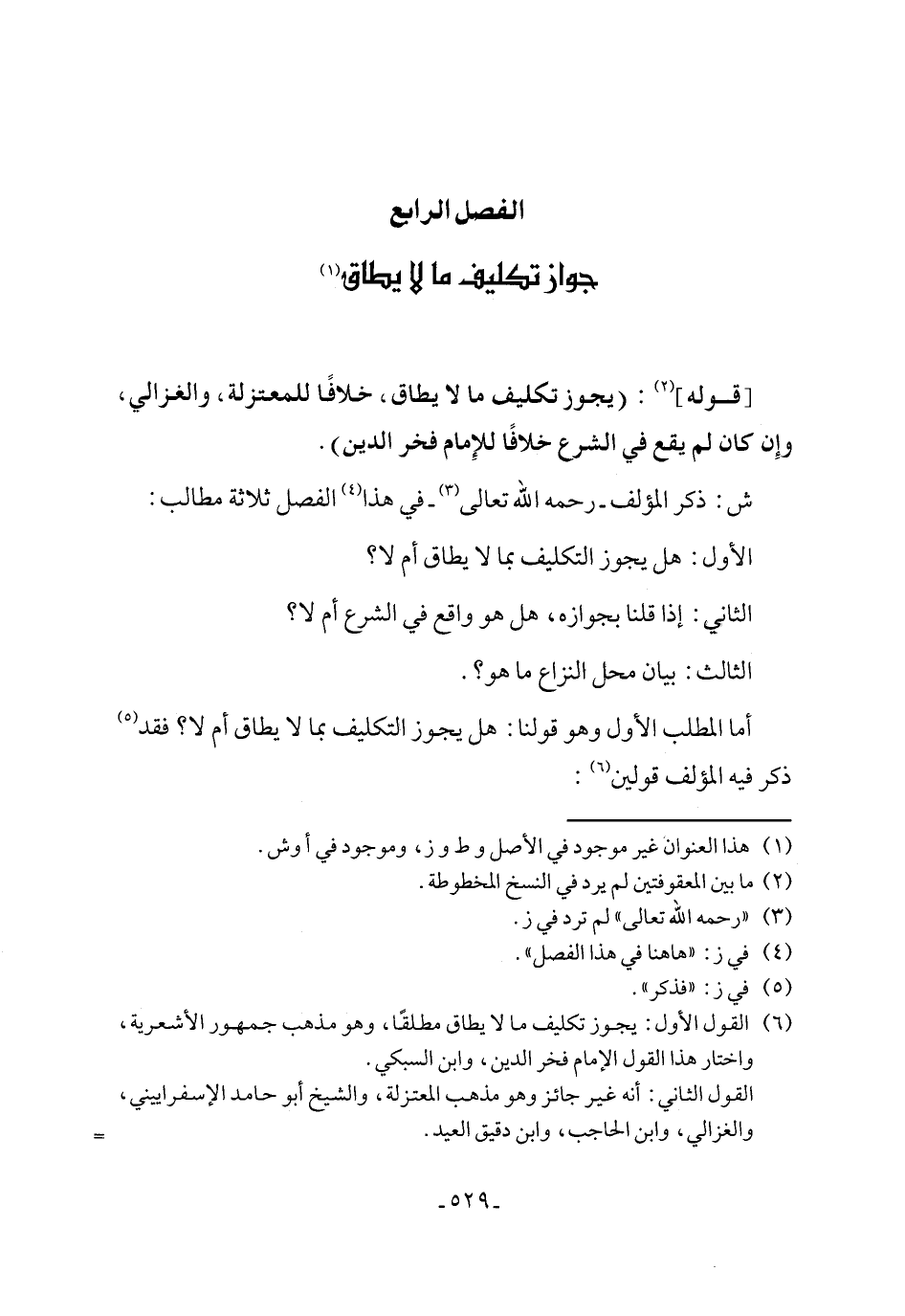 (¬6) القول الأول: يجوز تكليف ما لا يطاق مطلقًا، وهو مذهب جمهور الأشعرية، واختار هذا القول الإمام فخر الدين، وابن السبكي.