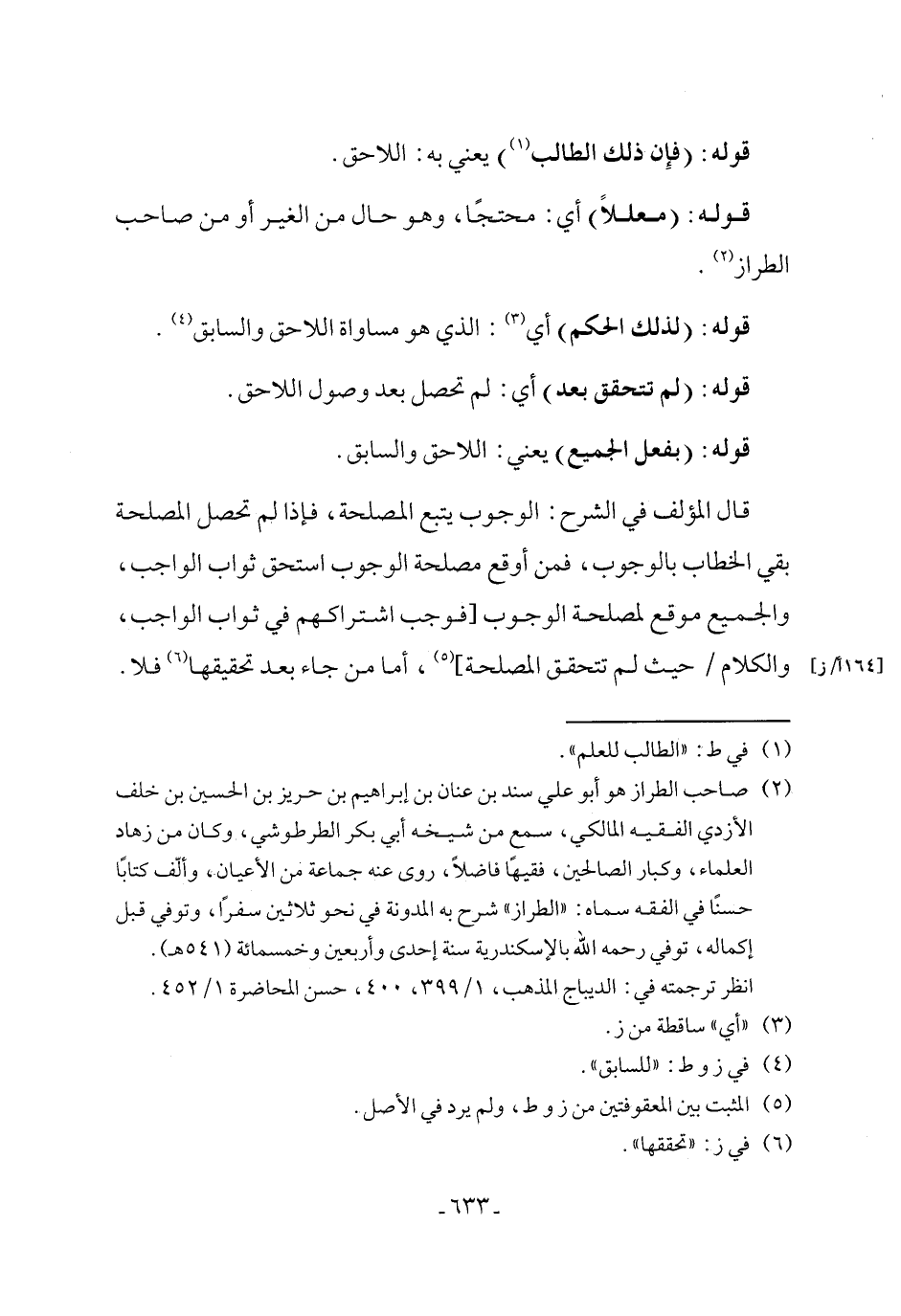 قوله: (فإِن ذلك الطالب (¬1)) يعني به: اللاحق.