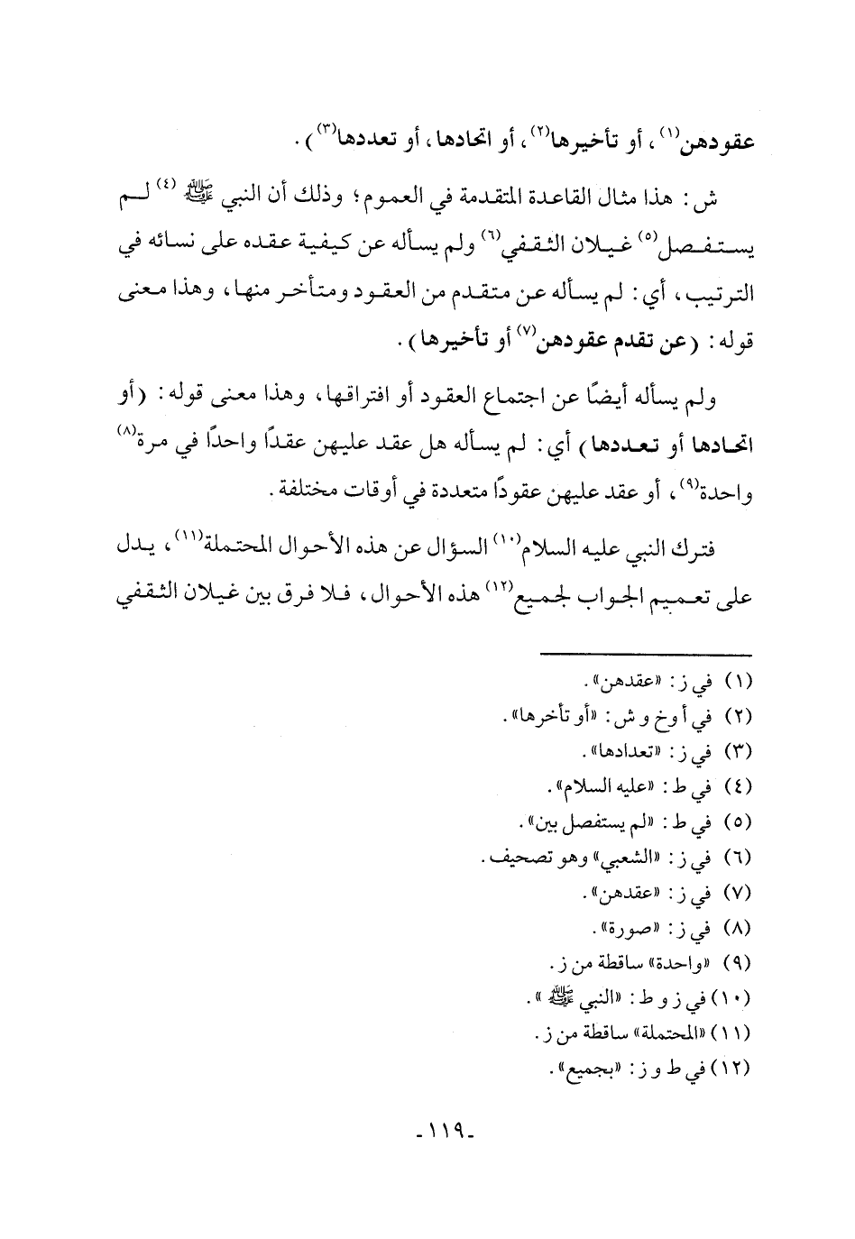 ش: هذا مثال القاعدة المتقدمة في العموم؛ وذلك أن النبي - صلى الله عليه وسلم - (¬4) لم يستفصل (¬5) غيلان الثقفي (¬6) ولم يسأله عن كيفية عقده على نسائه في الترتيب، أي: لم يسأله عن متقدم من العقود ومتأخر منها، وهذا معنى قوله: (عن تقدم عقودهن (¬7) أو تأخيرها).