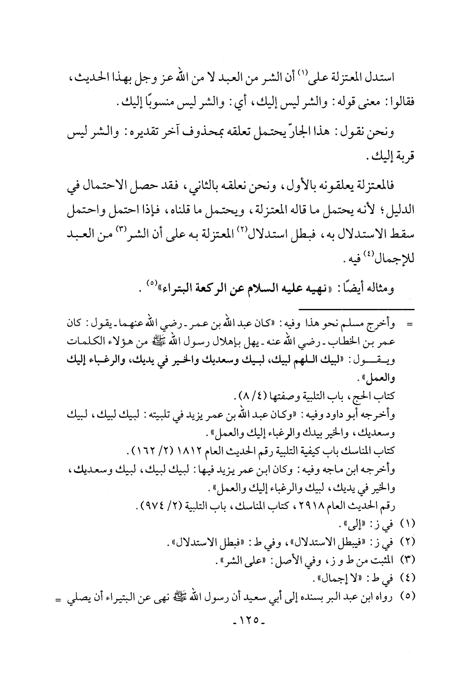 استدل المعتزلة على (¬1) أن الشر من العبد لا من الله عز وجل بهذا الحديث، فقالوا: معنى قوله: والشر ليس إليك، أي، والشر ليس منسوبًا إليك.