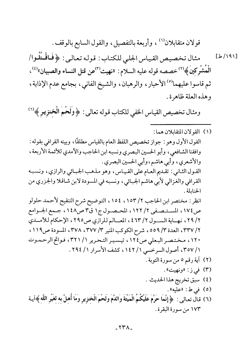 انظر: مختصر ابن الحاجب 2/ 153، 154، التوضيح شرح التنقيح لأحمد حلولو ص 174، المستصفى 2/ 122، المحصول ج 1 ق 3 ص 148، جمع الجوامع 2/ 29، نهاية السول 2/ 463، المعالم للرازي ص 295، الإحكام للآمدي 2/ 337، العدة 3/ 559، شرح الكوكب المنير 3/ 377، 378، المسودة ص 119، 120، مختصر البعلي ص 124، تيسير التحرير 1/ 321، فواتح الرحموت 1/ 357، أصول السرخسي 1/ 142، كشف الأسرار 1/ 294.