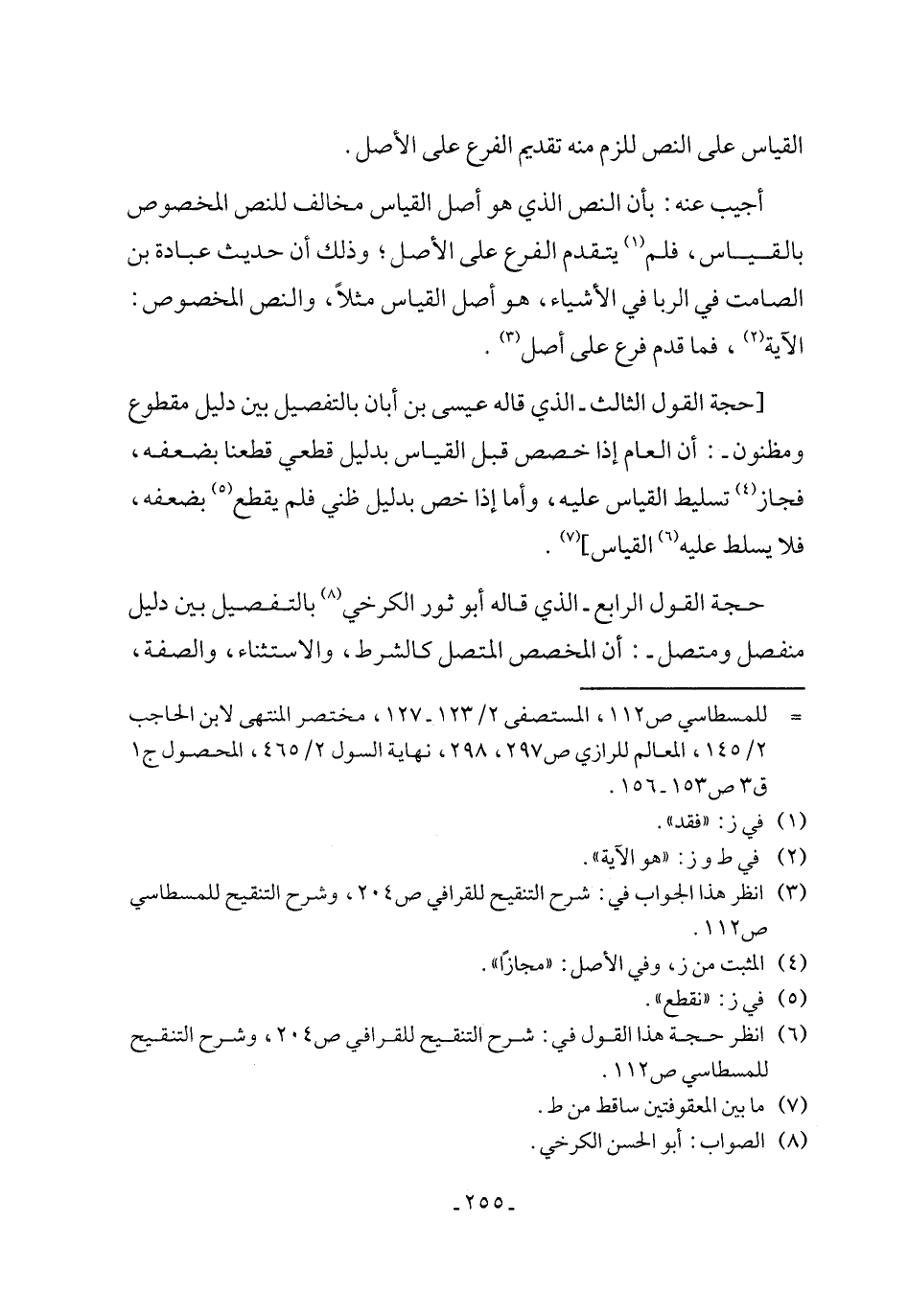 (¬3) انظر هذا الجواب في: شرح التنقيح للقرافي ص 204، وشرح التنقيح للمسطاسي ص 112.