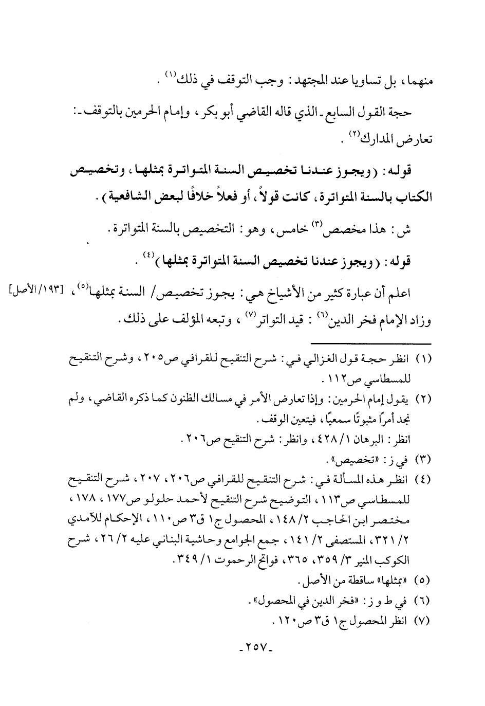 (¬7) انظر المحصول ج 1 ق 3 ص 120.