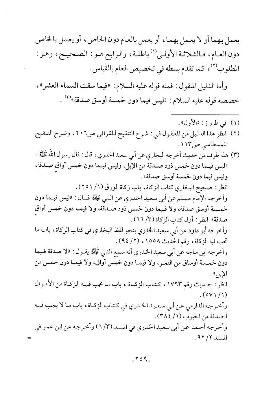 (¬2) انظر هذا الدليل من المعقول في: شرح التنقيح للقرافي ص 206، وشرح التنقيح للمسطاسي ص 113.