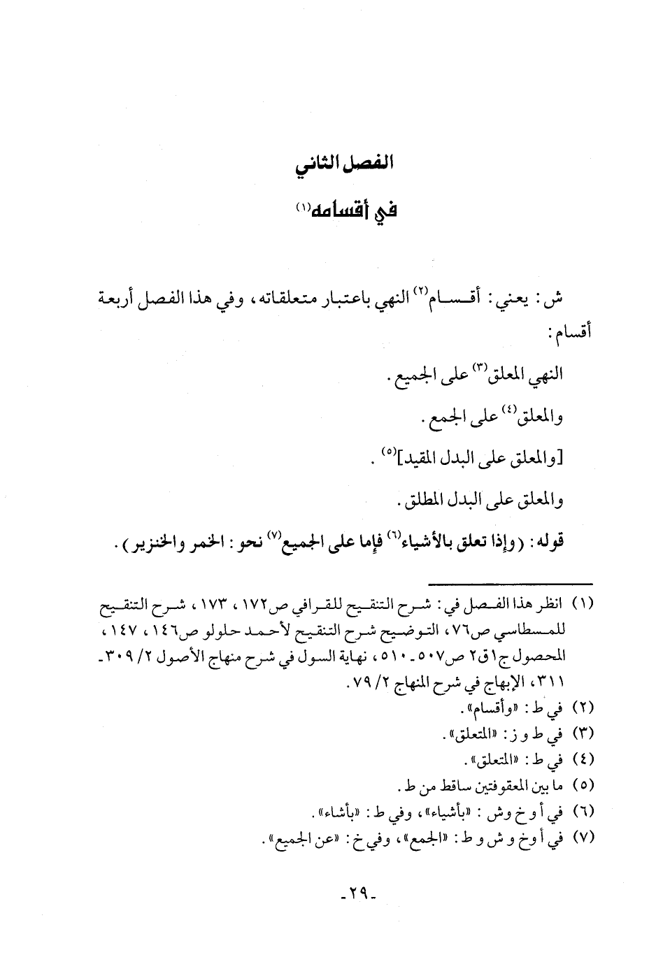 الفصل الثاني في أقسامه (¬1)