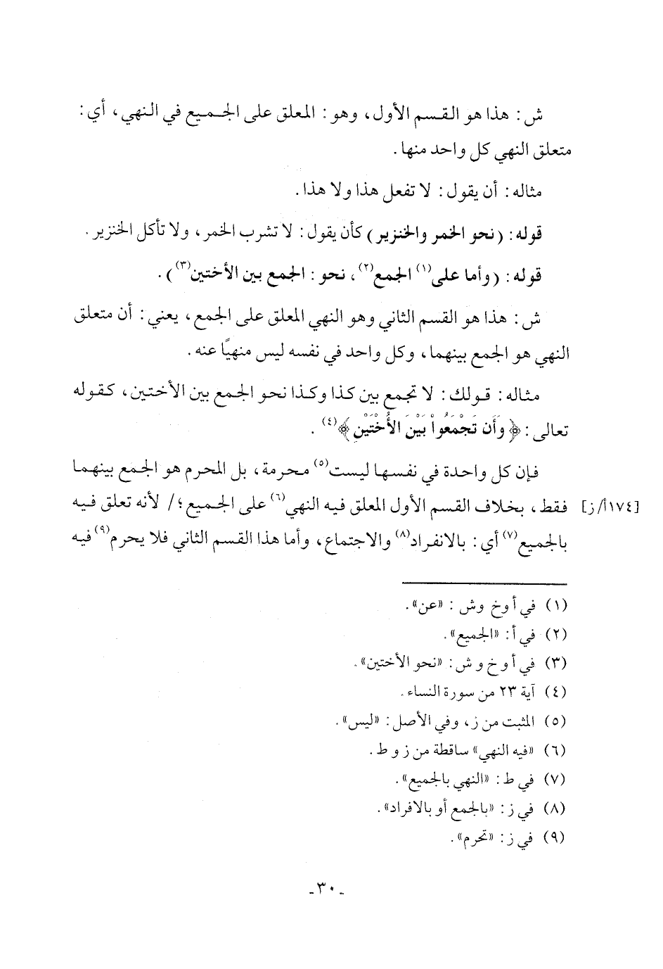 ش: هذا هو القسم الأول، وهو: المعلق على الجميع في النهي، أي: متعلق النهي كل واحد منها.