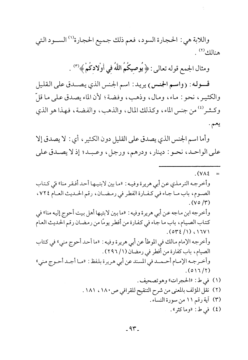 ومثال الجمع قوله تعالى: {يُوصِيكُمُ اللَّهُ فِي أَوْلَادِكُمْ} (¬3).