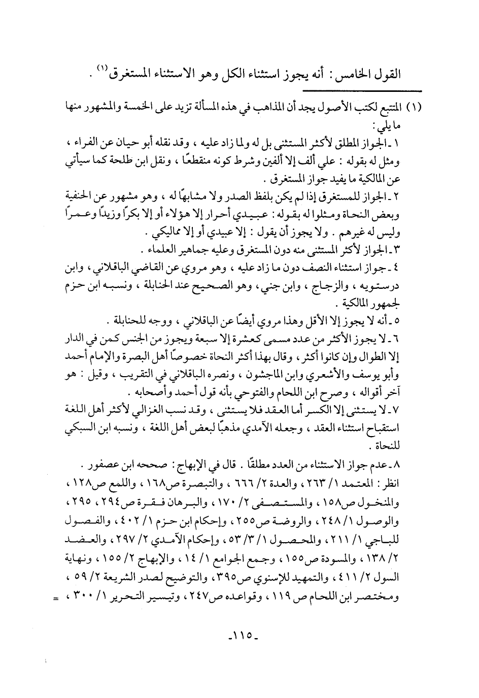 القول الخامس: أنه يجوز استثناء الكل وهو الاستثناء المستغرق (¬1).