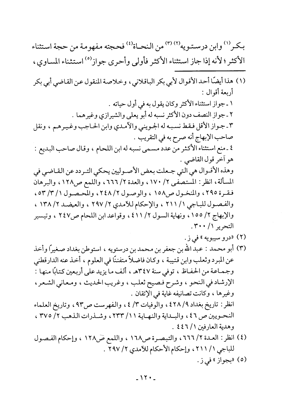 4 - منع استثناء الأكثر من عدد مسمى نسبه له ابن اللحام، وقال صاحب البديع: هو آخر قول القاضي.